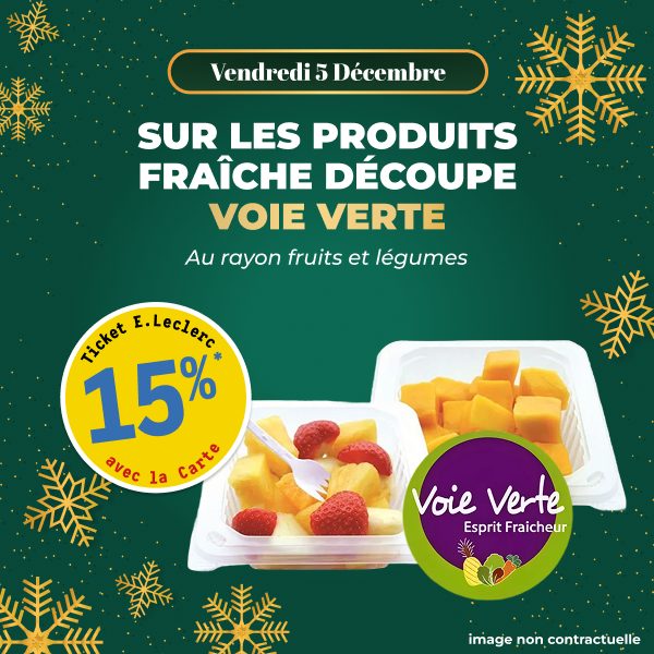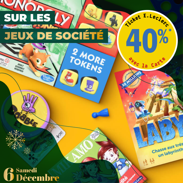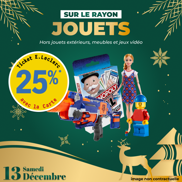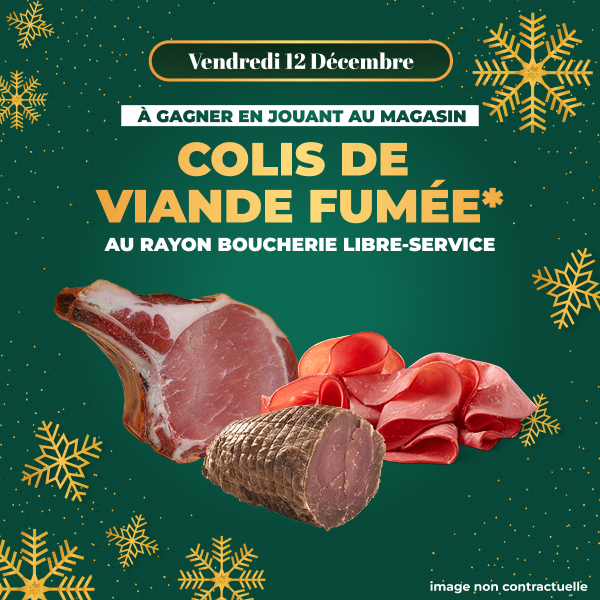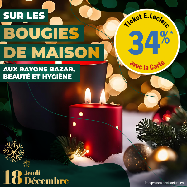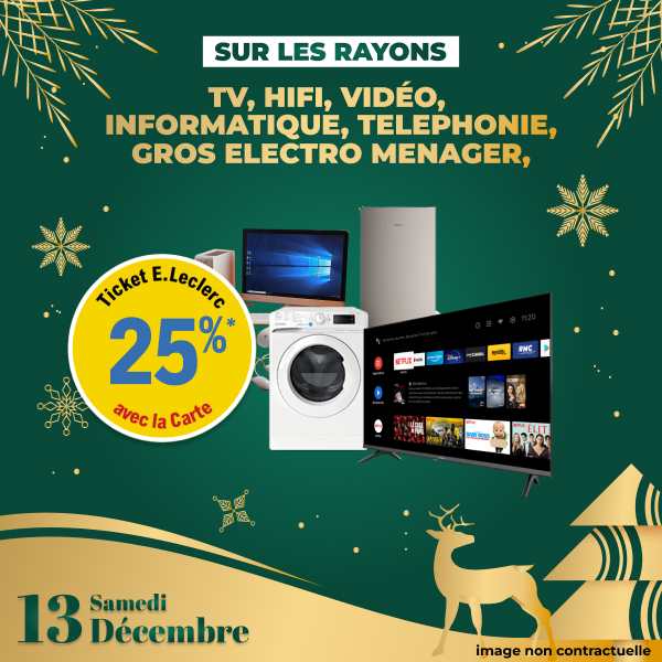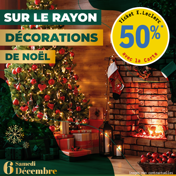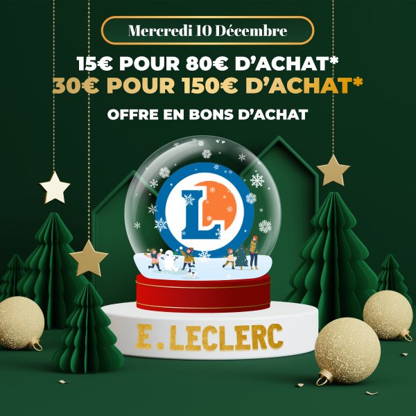 *Bon valable du 11 au 31 décembre 2025 sur l'ensemble du magasin hors DRIVE, cartes, cadeaux, presse, livres, gaz et carburant, Utilisable en une seule fois pour un montant supérieur au bon d'achat. Emission de 15 € en Bon d'achat dès 80 € d'achat hors cartes cadeaux, livres, presse, gaz, carburant,et DRIVE. Emission de 30 € en Bon d'achat dès 150 € d'achat hors cartes cadeaux, livres, presse, gaz, carburant,et DRIVE